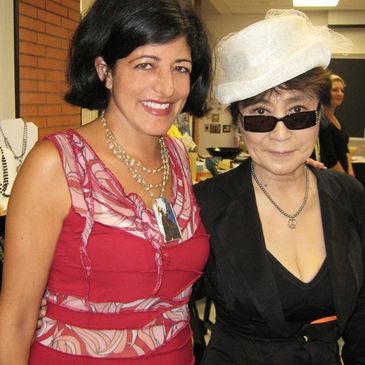 When my friend proposed the idea of "Jeweling" Yoko Ono and snapping a photo, Yoko declined, enforcing a strict "no photos" rule for everyone present. However, knowing my deep admiration for Yoko's performance art from my college days, my friend made a compelling case for an exception. Introducing me as a fellow artist who deeply respects her craft, Yoko relented, granting permission for a photo but only with me.